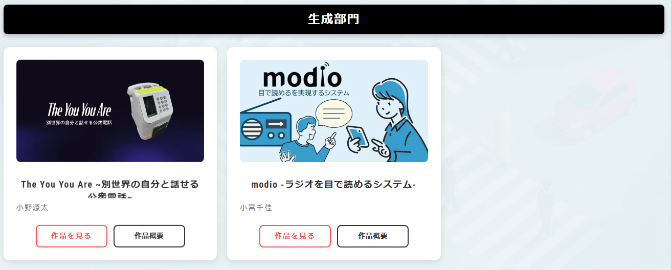 ※作品体験時間:14:00-17:00の間いつでも体験可能ですが、授賞式中は一部の作品が体験できない場合がございます。